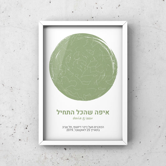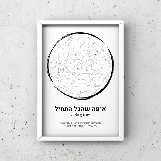 מפת כוכבים ממוסגר ״מכל הלב״
